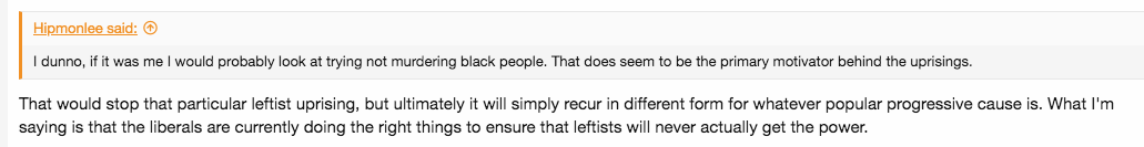 That would stop that particular leftist uprising, but ultimately it will simply recur in different form for whatever popular progressive cause is. What I'm saying is that the liberals need to stay on their course or leftists will overtake.