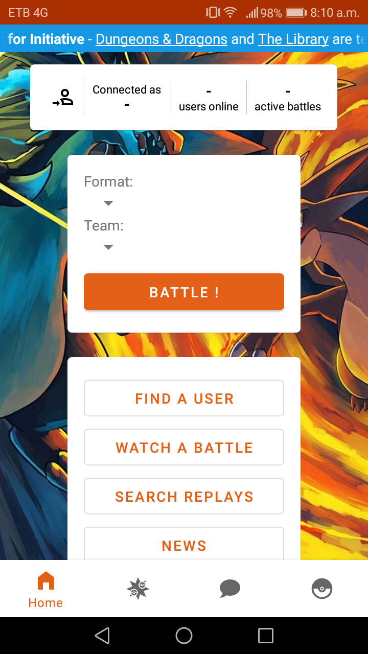 After the update, sometimes the app acts like it's not connected to the Showdown server, except for the news tab. When this happens I can't log in, chat, spectate, nothing.