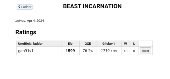 *Your Glicko's confidence interval (i.e 1886 ± 43) must be below 50 to make sure your GXE is representative enough of your skill.