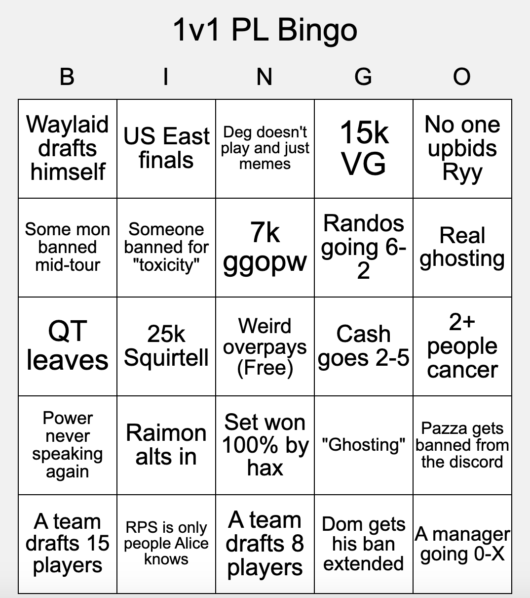 20. neomon / power: Neo never came across as someone who liked 1v1 very much, and his shitty week 7 post last pl didn't do him any favors. Power is another big smogon guy who's decent ig.