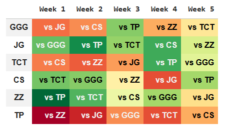 - If you are unable to schedule with your opponent, please let your managers know ASAP so they can communicate that to me or the other team's managers for a potential substitute.