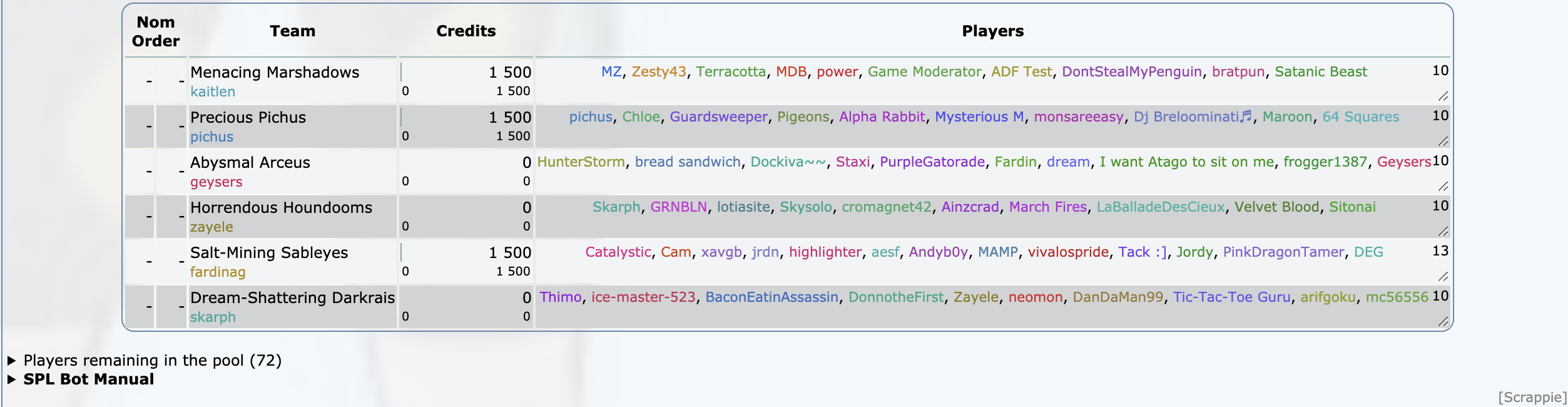 Icemaster started the draft guns blazing and he has lined up an insanely good set of players. I am out of the AG loop but I think he's the best natdex player, Pigeons is as good a bo3 slot as you'll ever get, Zenithial is a top 3 SM player, Chloe is a top 5 ORAS player, this is unbelievable. I have no idea who arifgoku is but I know for sure that every single player is extremely skilled and capable of building teams. It would take some ridiculously bad luck/team implosion for the Marshadows to not make finals.