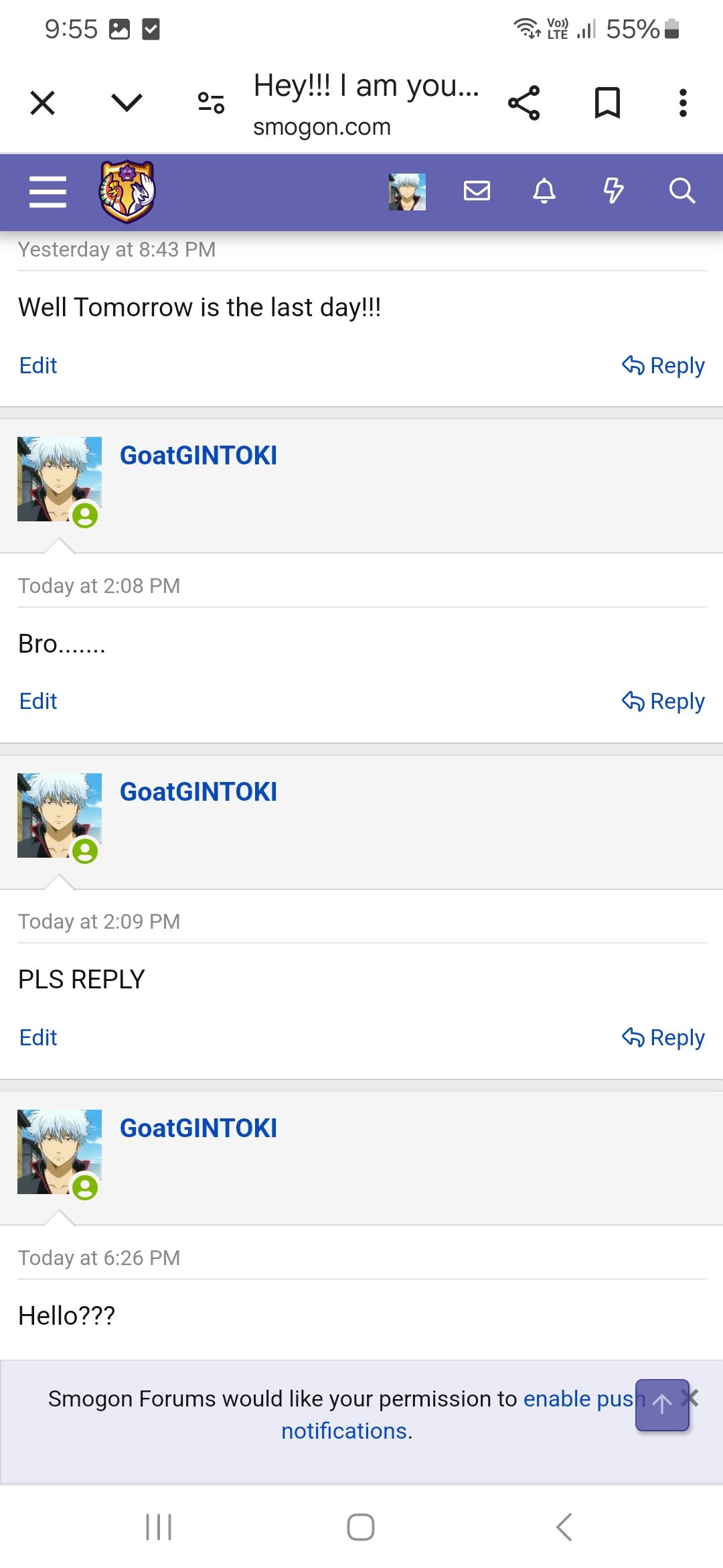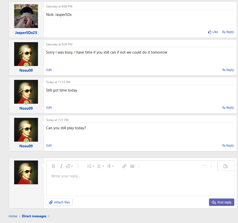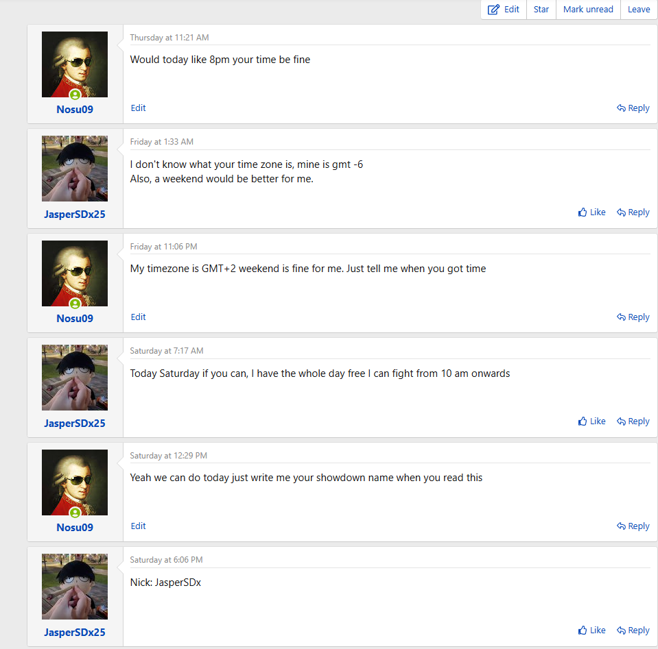 Make contact with your opponents! Every season we have to make activity calls that displease one party member. To prevent this, post a VM on their Smogon wall to try to set a date for the battle. If you do this via any other medium, save logs and screenshots so that in the event of an activity call, you get it to go your way. Leave time zones, preferred time to play, and be specific. No activity calls will be made if neither player posts about it
