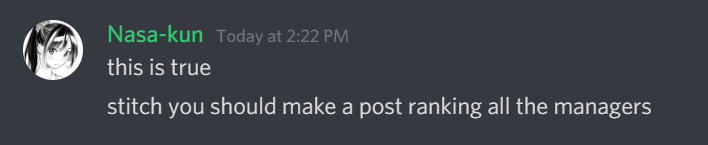 This was a fresh pair in BLT VII, with temp being a playing manager last year. Unfortunately temp said he's not a playing manager this year and neither is micoy (who sniped me in dpp ubers roomtour >:c), but I think they have solid knowledge in managing as well as drafting after managing in snoms last blt and snoms/dracos for tpp2. The reason why I put them this low is that micoy mentioned that he was worried about dead team cords, and I don't think it's a pair that can make an active teamcord (this goes to poochyenas and articunos too). Also snowpoint snoms were much better wtf.