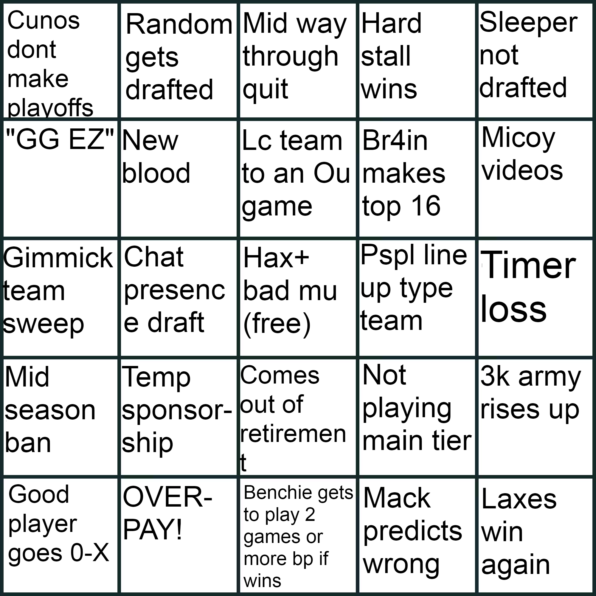 After each cycle, the top 16 players along with the players who met the 20 point threshold will be posted in a separated thread. Each player will be given until the next cycle to confirm their spot. Make sure you check in if you qualify! If this is not done before the deadline, players will lose their spot. When checking in, the following information will be required: