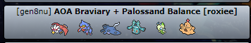 A soldier in the skies and an expert in combat is the Valiant Pokemon, Braviary. Its sky-high Attack paired with decent coverage allows it to break through many Pokemon like Vileplume, Sirfetch'd, Arcanine, and Diancie. Its serviceable typing provides an immunity to Ghost, allowing it to check unpatriotic subversives like Decidueye and Golurk. Defiant synergizes well with entry hazard setters like Garbodor and Dragalge to punish Defog from Mantine or Comfey. Close Combat decimates Steel- and Rock-types like Copperajah and Tyrantrum that resist Brave Bird. Iron Head targets Diancie and finishes off weakened foes without drawbacks. Pokemon like Drapion, Palossand, and Nasty Plot Celebi should be used to check Iron Defense Bronzong and other defensive Pokemon like Mudsdale and Garbodor. Offensive Water-type absorbers like Toxicroak and Heliolisk are also encouraged to check Blastoise, Vaporeon, and Inteleon. Electric-resistant Pokemon like Celebi, Decidueye, and Dragalge check Heliolisk and Rotom-C. Maximum Speed with a Jolly nature outspeeds neutral base 85s like Kingdra, Toxicroak, and Duraludon.