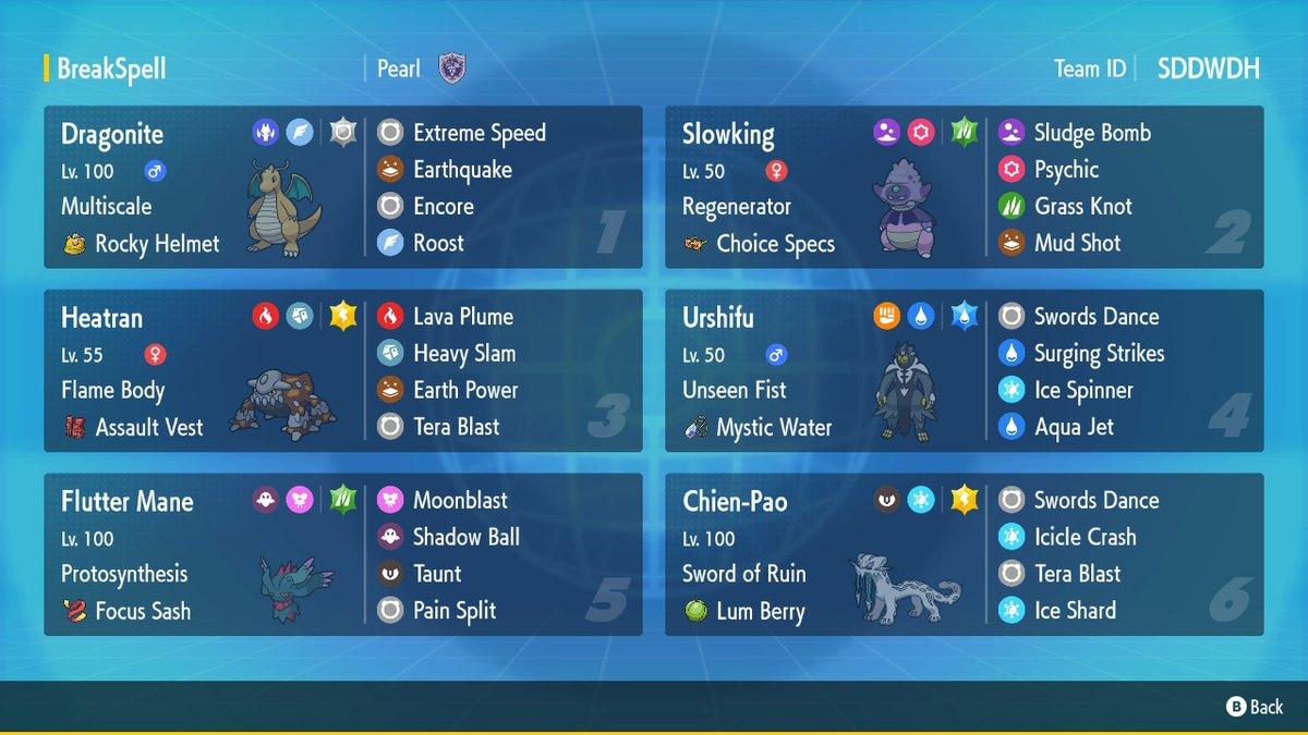 As per usual, the team and its Pokemon are named after songs by a music artist that I like a lot. I won't pretend that there's a deeper meaning to it other than the fact that I thought it was a cool name for a team centered around Galarian Slowking, but Break a spell could also be used to symbolize the process of escaping the rut I was going through in Regulation D up until the final iteration of this team was born.