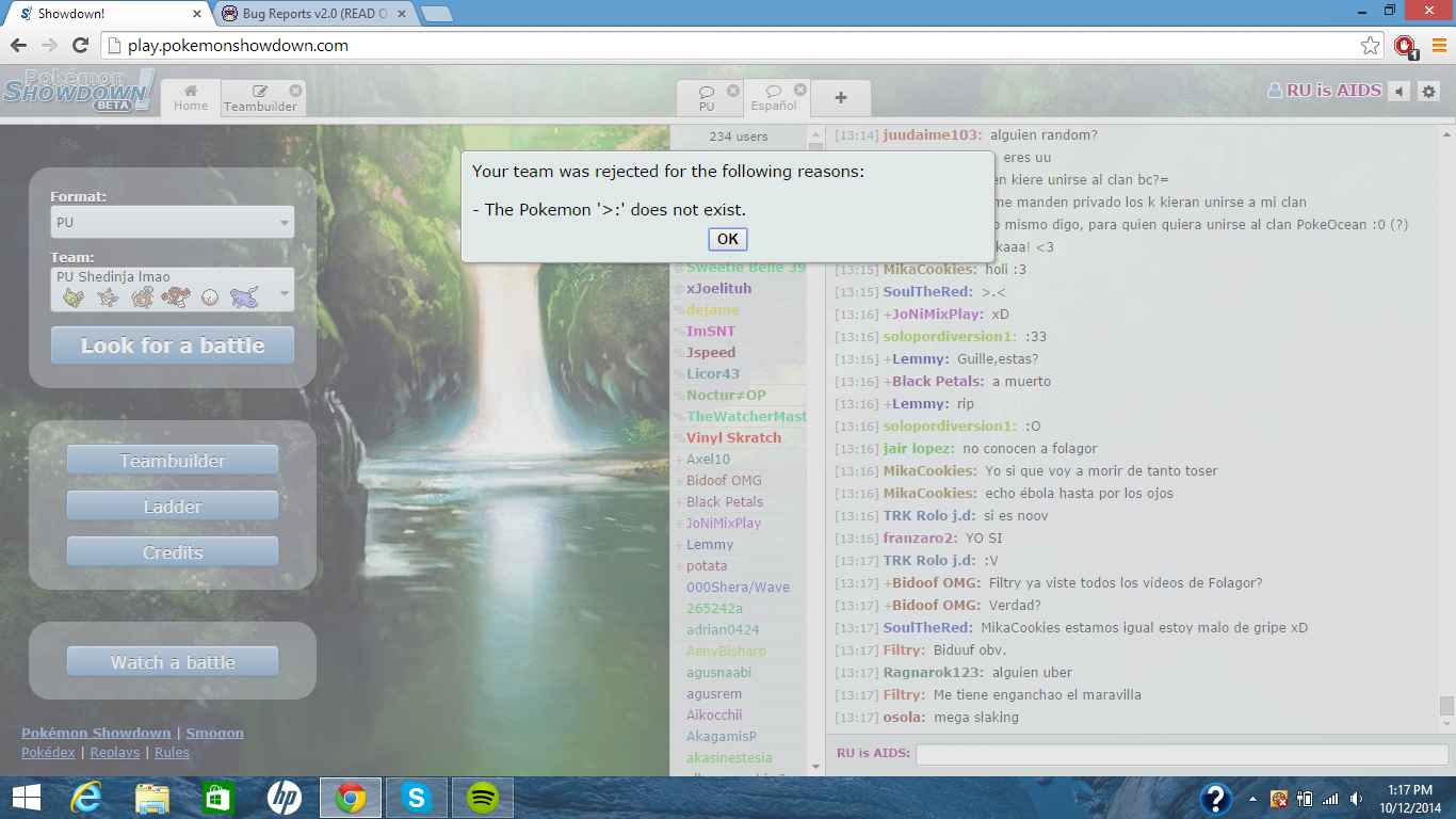 So I was trying to nickname my my Pokemon after faces, like ">:(", ">:|" and ">:D", but when I tried to ladder with them nicknamed like that, it said "The Pokemon '>:' does not exist". I tried removing the ">" from the faces, but then it would just say "The Pokemon ':' does not exist". Why isn't this working? And can someone fix this please :[