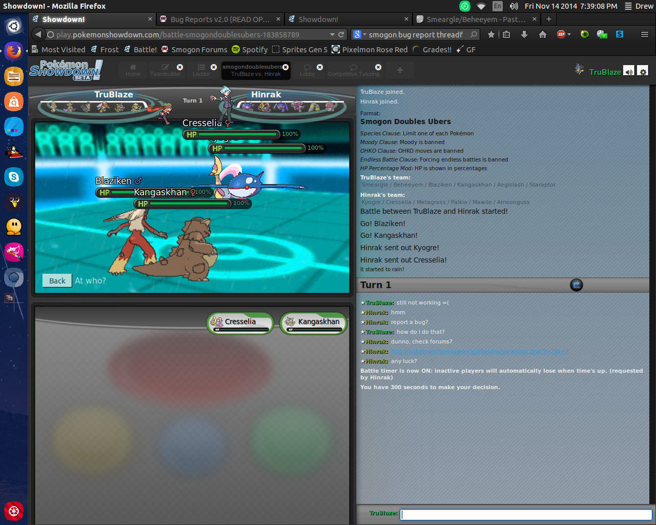[00:25] <woodchuck> and if people are mad tell them to be angry at meThis thread is dedicated to reporting bugs in Pokemon Showdown, with special attention given to incorrect move implementations.