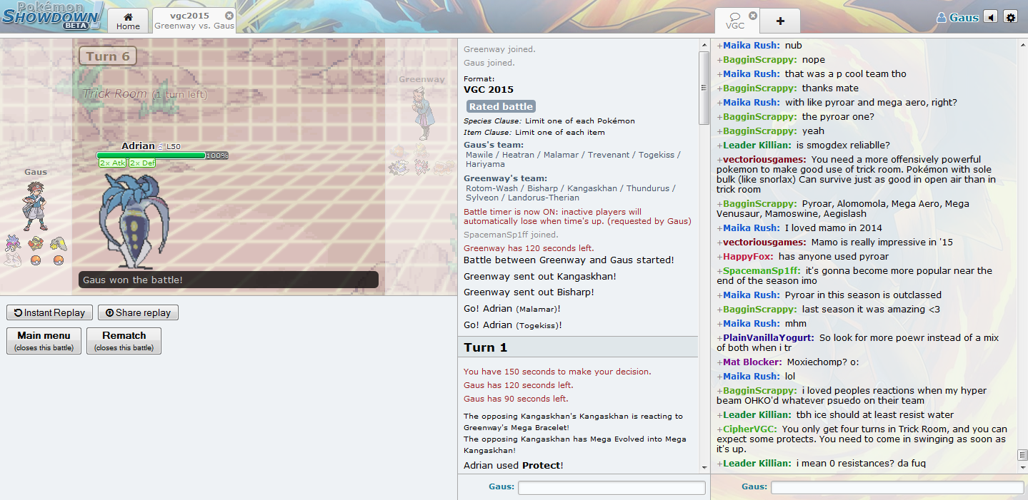 Gaus's team: Mawile / Heatran / Malamar / Trevenant / Togekiss / Hariyama