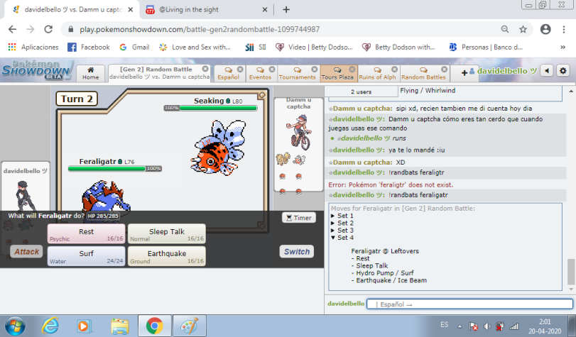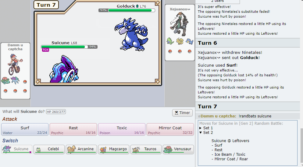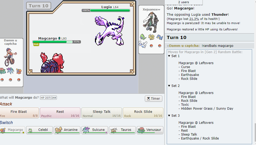 This bug was for already 4 months and i didn't see it was reported or fixed is about gen2 randoms, the pokemons will allways have the last set that has and the other sets are blocked, i'll post some images to explain this. I've played more than 60 battles to confirm this so i'm sure that this isn't working right, and i hope this get fixed bc most pokemons gets one set-predicted by this error.