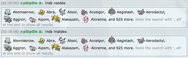 /nds natdex and /nds !natdex show the same thing