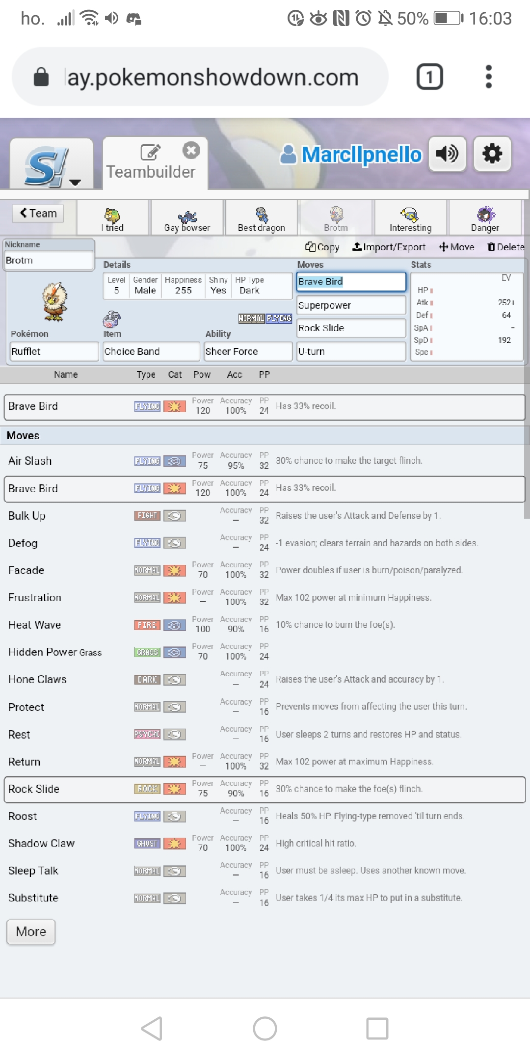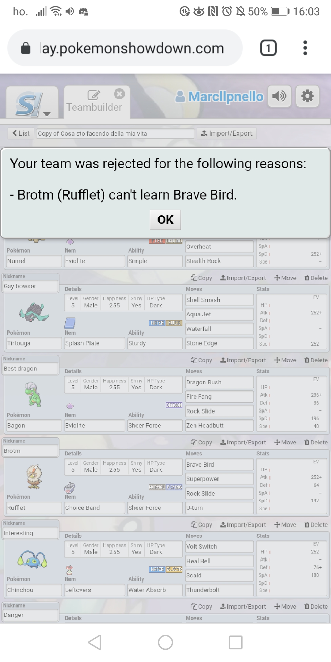 Rufflet can learn brave bird,but the verify say he cant learn it in gen 5 lc