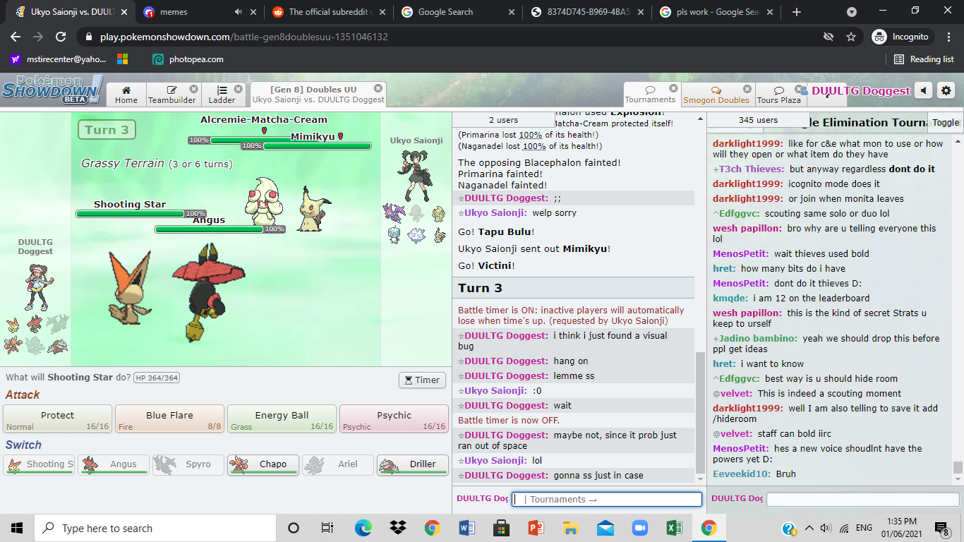 - If at any point after the first 100 turns of battle all Pokémon on the field are stale, at least one team does not have the option of switching to a non-stale Pokémon, and at least one side's Pokémon's staleness has been inflicted by a Pokémon of the opposing side, the game ends. If only one side started the battle with the rudimentary means to perform restorative berry-cycling (defined to be a team containing a Pokémon holding a restorative berry as defined above and a Pokémon with Recycle, Harvest, or Pickup), it loses. Otherwise, the battle ends in a tie.