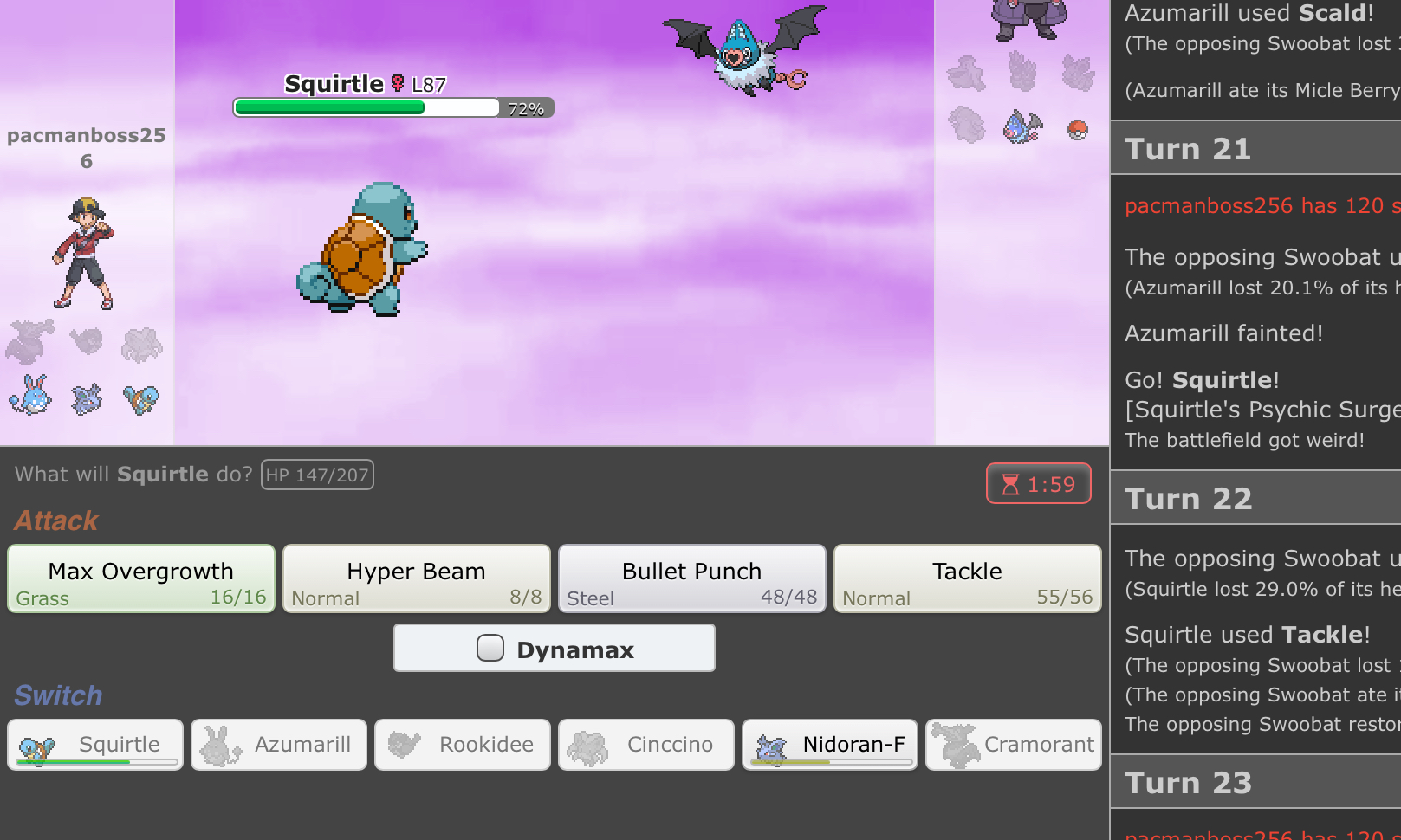 Edit: One of the azumarills in the first image should have been a pokeball because the squirtle had not been sent out yet. The second image shows that azumarill fainted in my party but was still alive on the sidebar