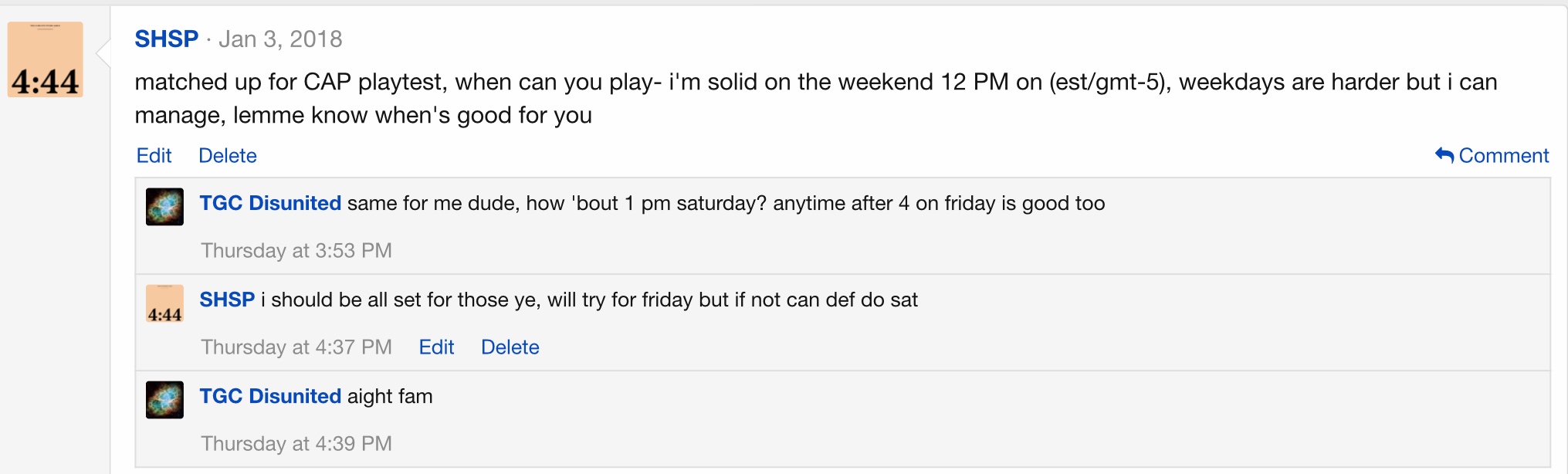 I fail to see how I “didn’t say shit” when I clearly stated I’d be on both times (in friday’s case, try to be because work) which I was and then some (sunday).