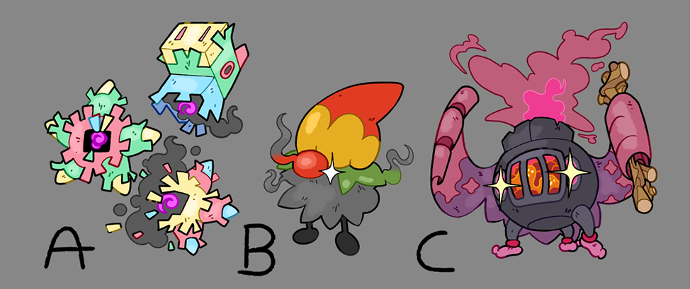 I'm no artist and it took hours to do this in MS Paint, but I'm pretty happy with the result. The idea of a firework rocket was inspired by the choice of Pixilate as our primary ability and symbolises defining moves like Boomburst, Explosion, and Extreme Speed. Any feedback would be appreciated!