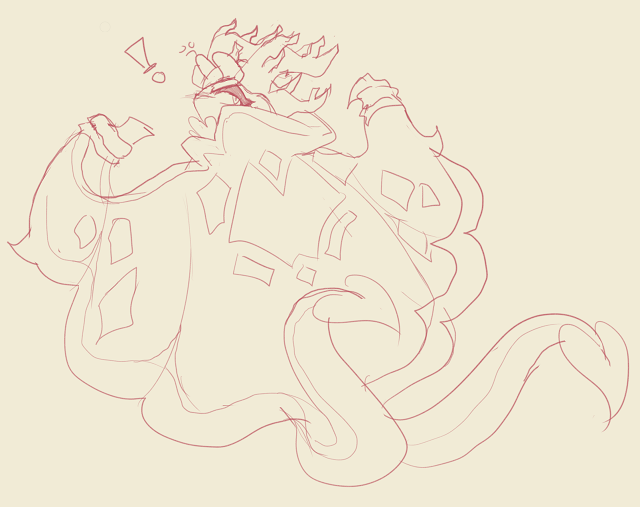 I tried morphing the ship's figurehead into different animals, a turtle, into a platypus kind of guy, and it just looked really weird. So I focused on the shell... the turtle ship has very distinct hexagonal plates that I was using as "scales", I then thought of a Pangolin + Conch... like.. a turtle is a dude in a shell... so.. a different dude, in a different shell... I wanted to draw the conch in a way that the shell looked layered & scaley, & incorporated Thalassocus elements to better sell the idea of an aquatic Pangolin ??