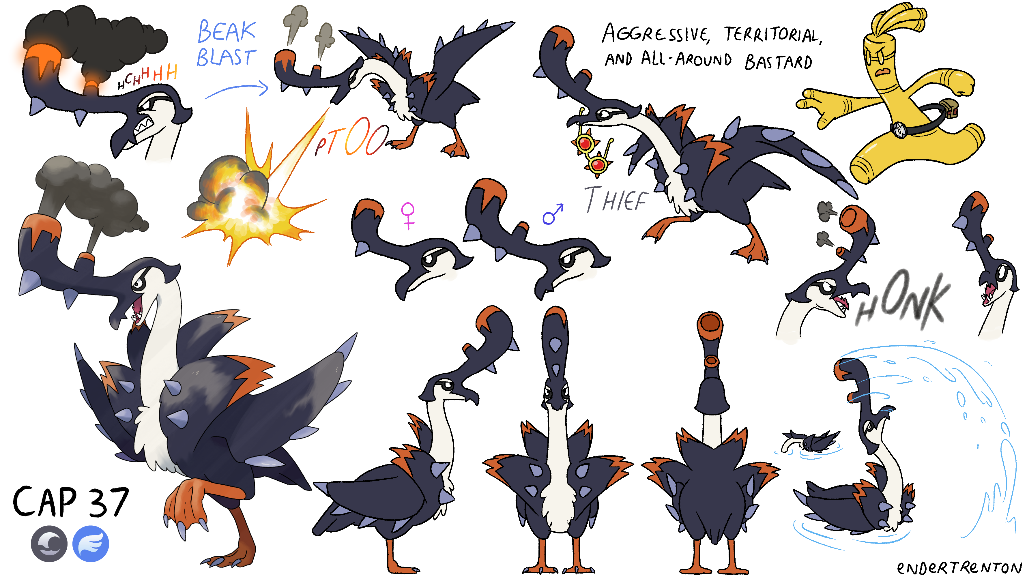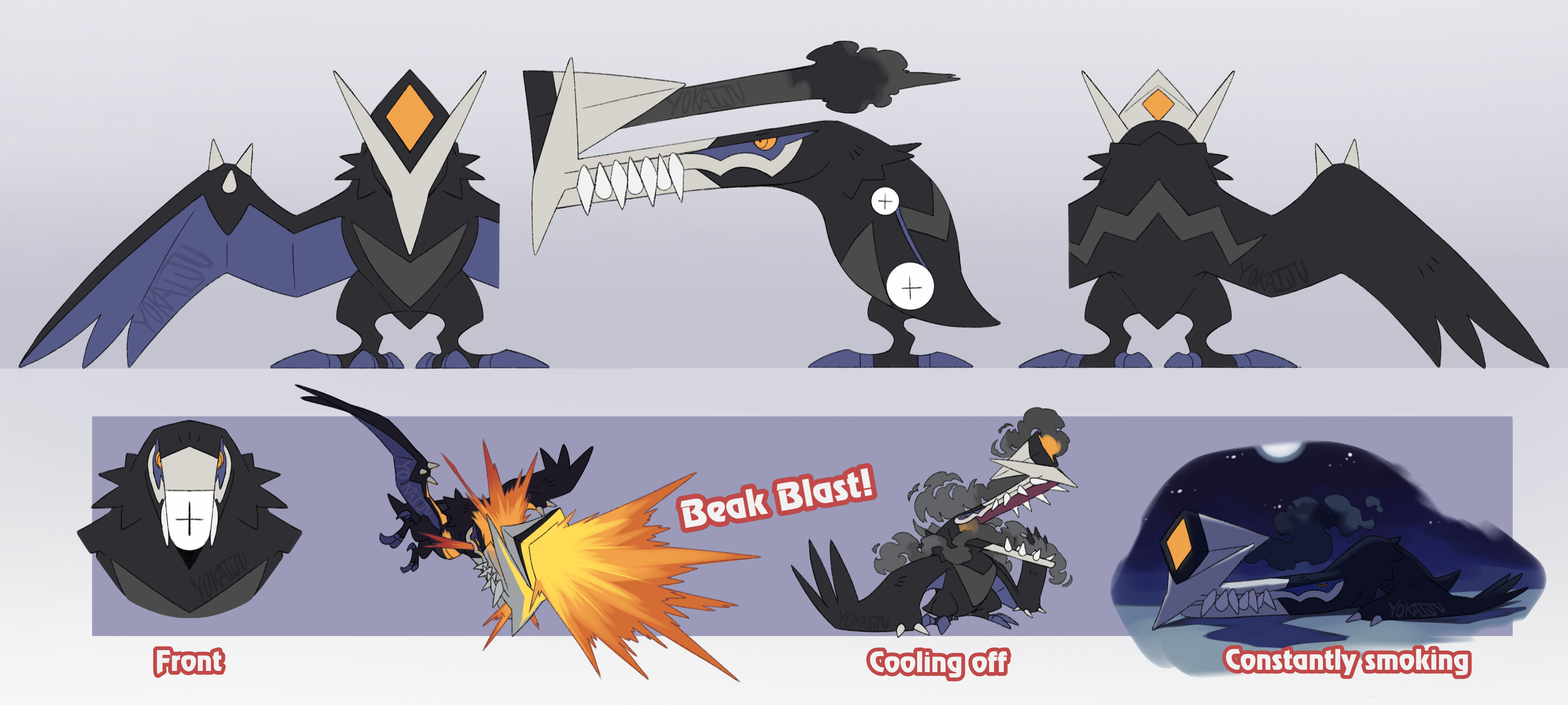 I had this simple idea for my submission, but I wasn't sure if it'd be enough, especially given Beak Blast. I did try to give it more bird-like traits, and I was even settling on an owl-like design below that I was fond of: