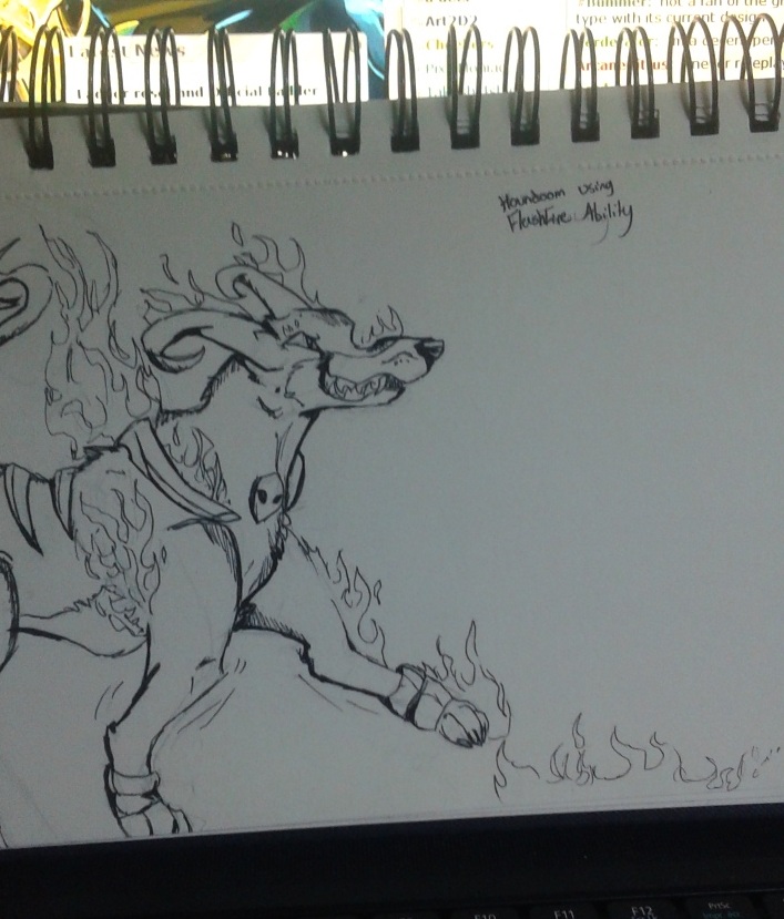 View attachment 48681 %Art2D2: Draw your favorite Pokemon activating one of its abilities. Houndoom activating flashfire. It's joint is backwards there on purpose. This is backwards again? I'll have to fix it
