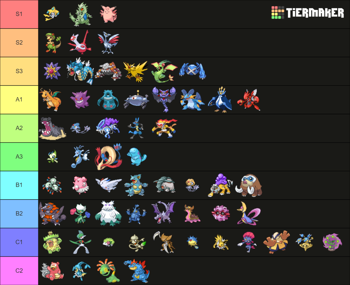 B- tier: Some amount of chaff here. Mons with good stats but other problems that prevent them from being better. I do think all of these can fit on a team that is built around them though.