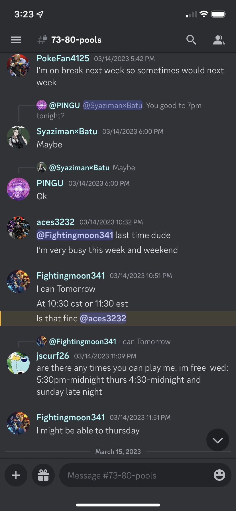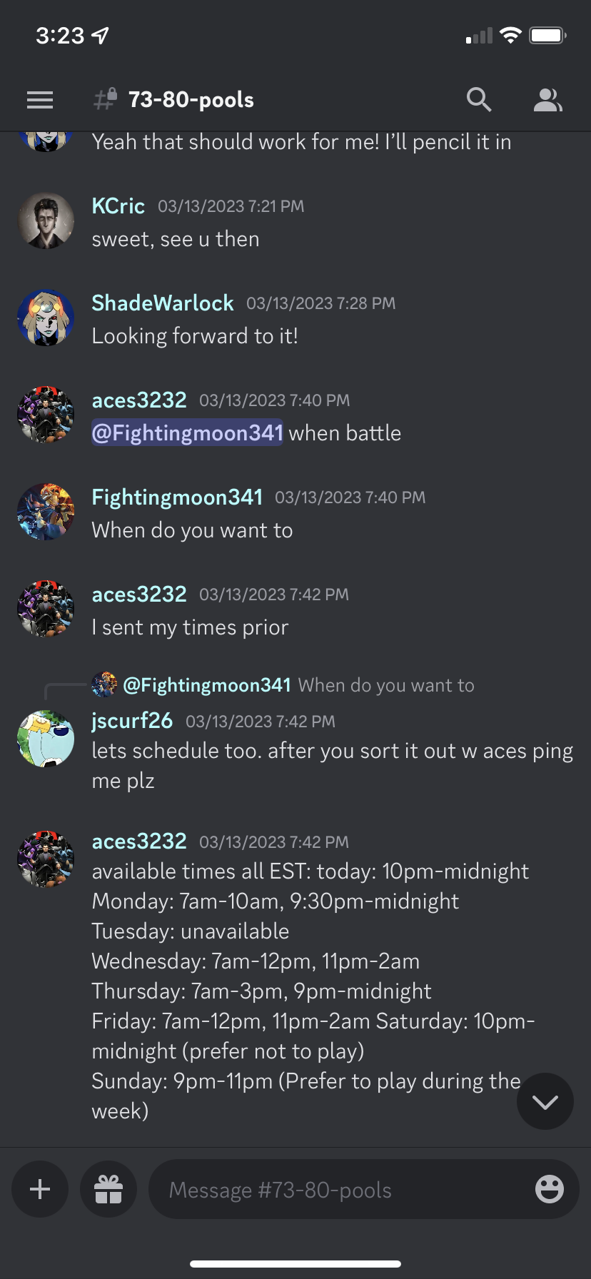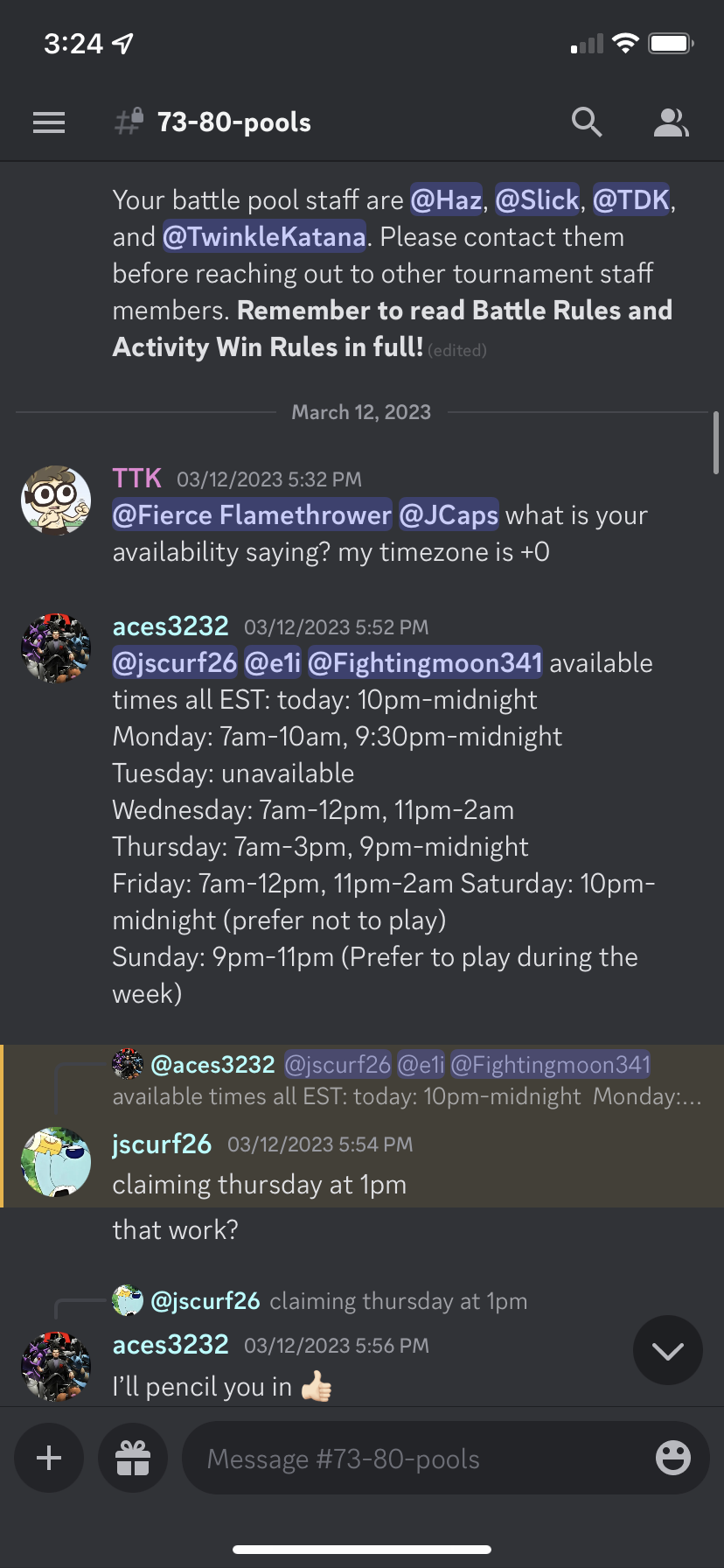 ACTIVITY WINS: fighting moon and e1i from battle pool 78 have both set times to battle failed to show and will not schedule a new battle time. I have tried 3 times each with both of them to no avail.