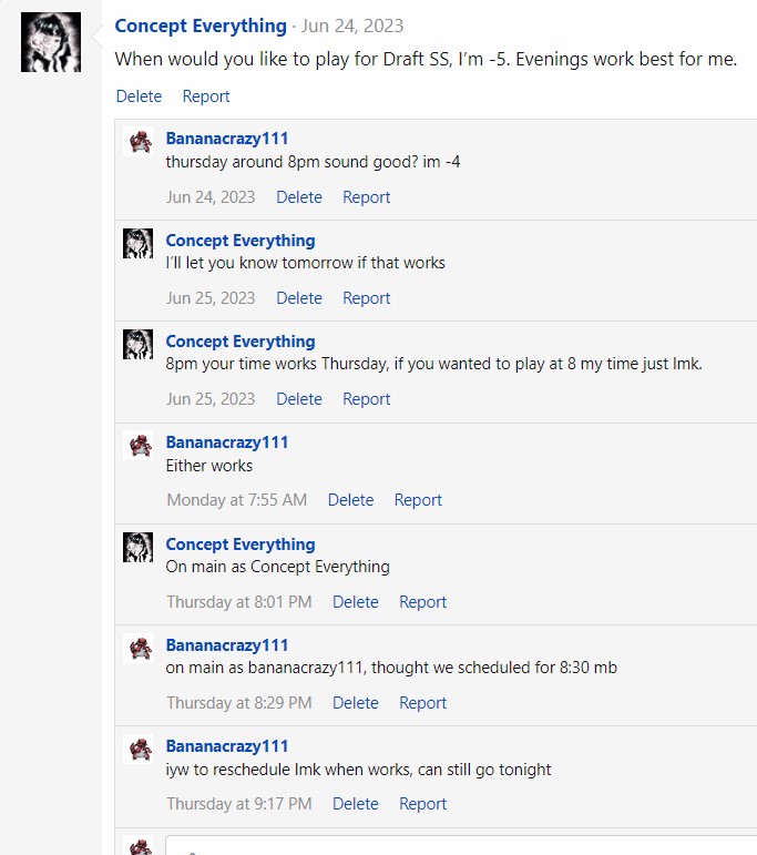 Proof they havent sent a message in smogon draft since (didnt want to follow up on forums for simplicity because we scheduled on discord)