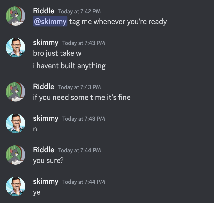 Rasche UMPL Champion Jul 22, 2023 #51 Extension request for my match vs not mishmesh , unfortunately we could not agree on a time this weekend, but we can both do the match on Monday