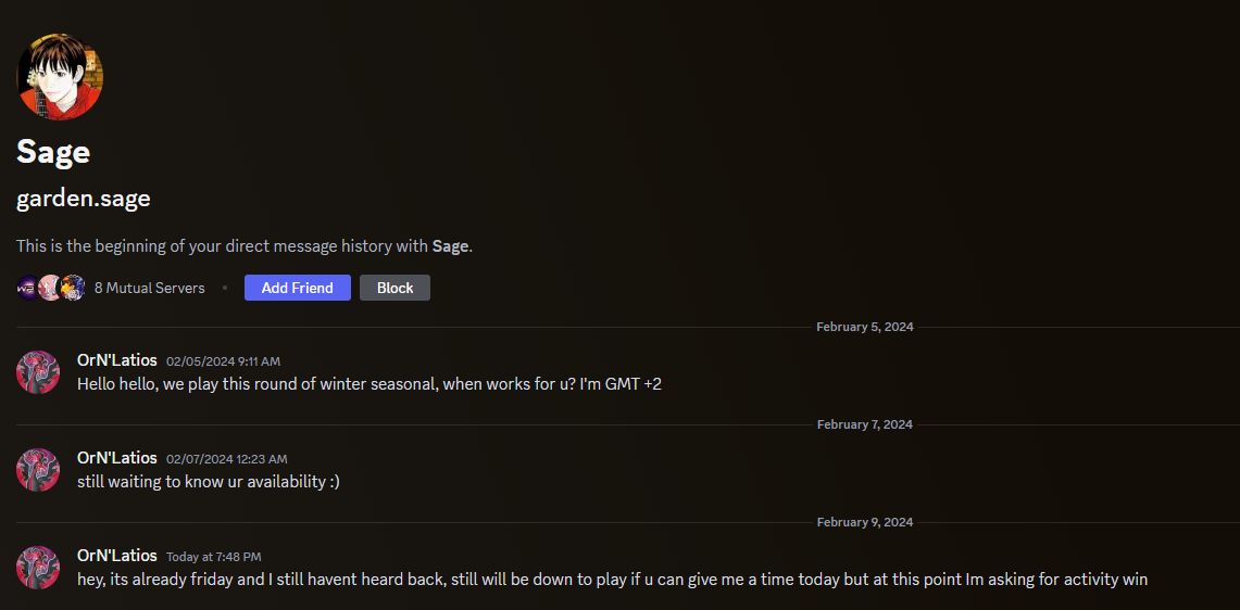 I will be down to play if they reach out by the end of today or Saturday, if it happens I will delete this post, otherwise Im just following through with this.