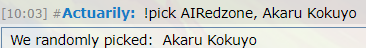 Akaru Kokuyo vs AIRedzone Players scheduled a time, but neither have claimed activity or posted a win. Game will be flipped, let me know if there is further information: