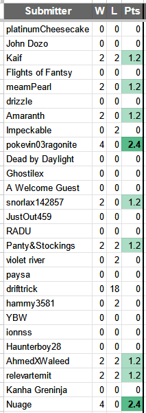 since your latest version was after YBWs win vs Kip, I'm going to have to reject your submission, or at the very least not grant you the points for his win. I've sent an editors rights request, if your first version has YBW as a starter I'll let it slideKanha Greninja can I re arrange it rq ?