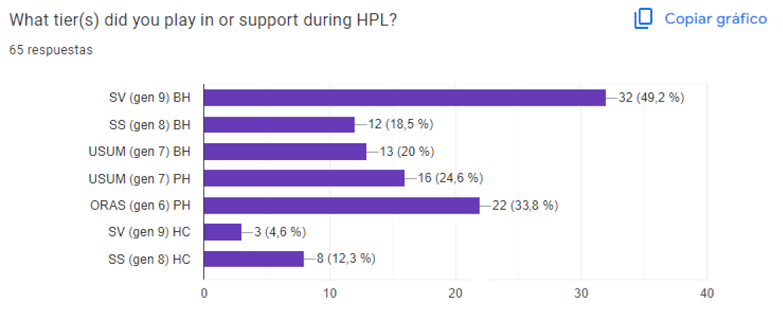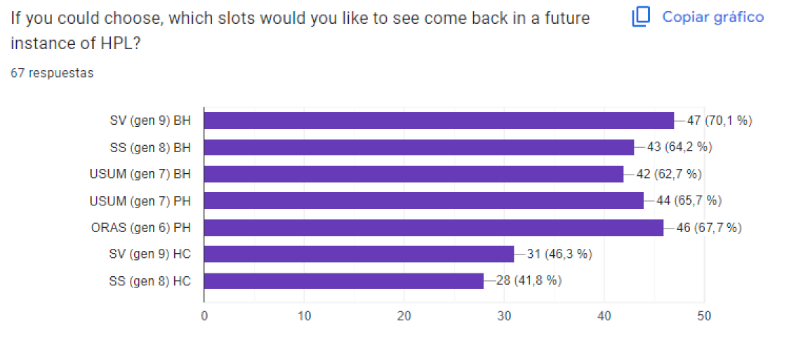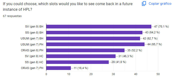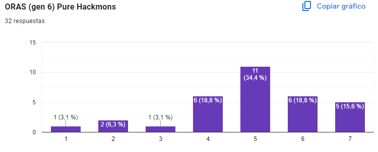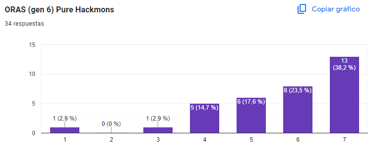 Note: This graphic is edited, because at the start I posted the poll with a typo (ORAS PH was wrongly clasified as gen 7) and when I corrected it google forms ordered it as if it was a diferent answer.