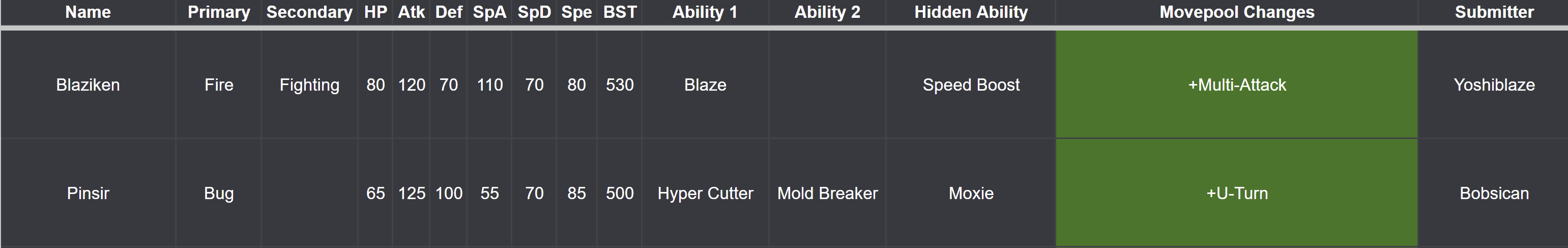 This slate, we got 2 Pokemon, Yoshiblaze and Bobsican with Blaziken and Pinsir respectively,