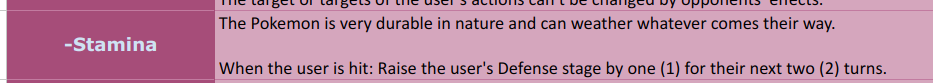 Abilities: Stamina, Sturdy Hidden Ability:Stalwart (Locked)