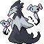 Puppessum and Grimssum, Dark and Dark/Ghost, don't let them trick you, the big body is just a doll made with hair, 5 Puppessum control the hairy puppet, upon evolving they use their dark ghostly powers to make a new version of the puppet using shadows!
