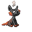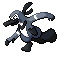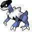 Theri and Theriscyno, Dark/Steel, this shy creature tries to look scary to keep predators away, when going to the lake to drink they sometimes get scared of their own reflection. They can make very irritating sounds with their claws.