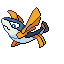 Bask and Peayes, Dark/Flying, the natives had a myth about a giant monster that would appear at night, but it turned out to be just Bask using their wings to look bigger and scare threats. Peayes pursue its prey all night if necesary, if the prey hides it will eventually fall victim of Peayes curse and fall asleep, allowing Peayes to enter its dreams and deal the final blow. It is said that their beautiful feathers are cursed and using them as ornament will give you nightmares until its returned to were it was optained.
