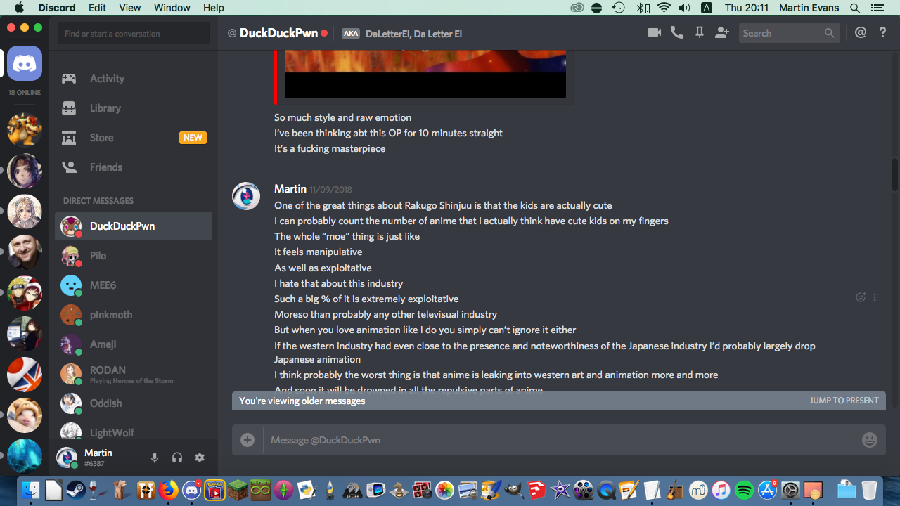 martin really likes to rant about anime over discord to me and he'll send me like 20 lines without me saying shit and i'll get online and go "what the fuck where did this come from"