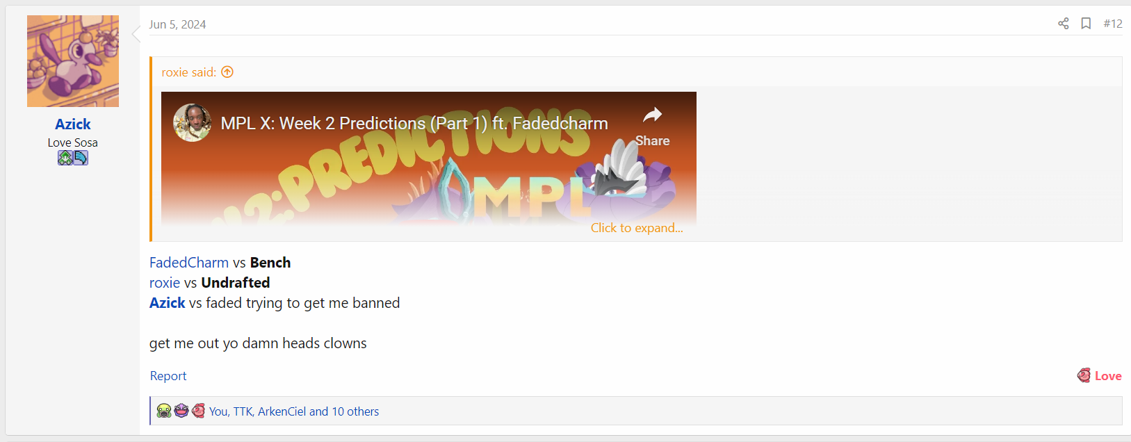 Playoff requirements will mirror that of MPL where your overall score will be comprised of week wins and total wins. Each week win is 2 points, a tie is 1 point, and a loss is 0 and will be recorded on the spreadsheet. Playoffs will come down to week wins, total wins, and then a bo3 tiebreaker.