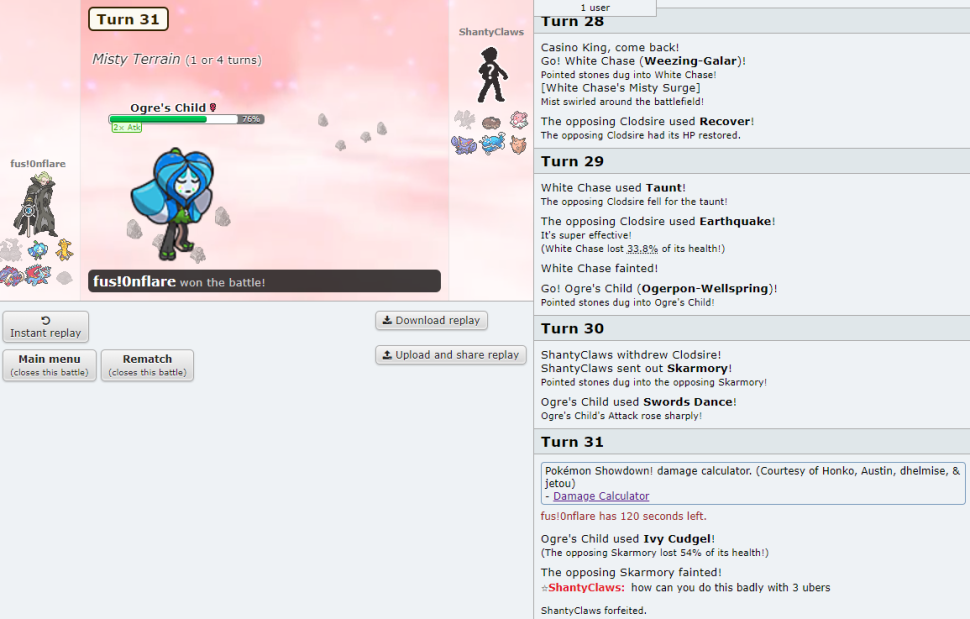 and finally, to end this update on a high note, here's a couple images of this stall player who, as you can imagine, has less than kind opinions regarding Wellspring Ogerpon. I sadly forgot to get the replay so you'll just have to witness their saltiness in all its glory here.
