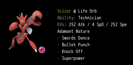 Scizor's set is good, though you can consider Roost over Super Power, as it allows you to stay longer in the field and be a scary threat ...longer