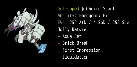 Golisopod...isnt really that bad. However, Choice Scarf Golisopod has no business to be in a mono bug team (still too slow at +1). However, since you said you use the Pokemon for "Coverage", and there really isn't enough ways to bully Poison and Steel harder: