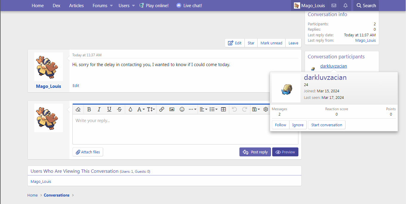 MZ Never more than twelve PU Leader Mar 24, 2024 #85 opponent hasn't been online since signing up, activity pls