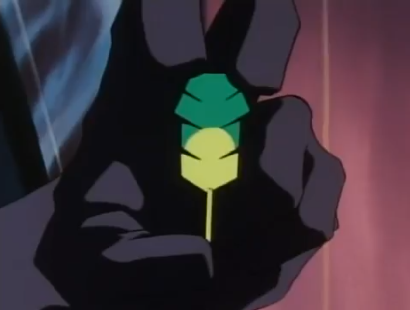 *There is artwork depicting it more like a plant -which would still be weird but hypotehtically would reference his japanese name and "Green badge" well enough- but it originates from early 2000s western media and has never been shown as anything other than a feather otherwise before & after that to my knowledge.
