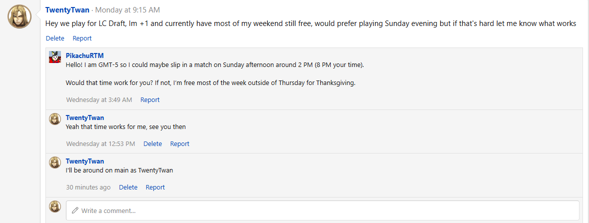Contact your opponent as soon as possible upon the round going up. Activity cases are going to be handled in a very strict manner.