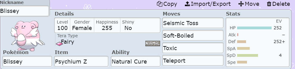 , this heat set has several uses. The usual seismic toss, soft boiled and toxic as the first three moves is nothing out of the ordinary, and while rare, neither is teleport. What sets this apart from other