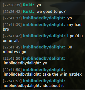- Identity: I expect many battles to be completed under alts. This can be bad for tournament security, and thus I will make this clear: If I hear any whispers of identity theft (battling as someone you are not) or proxy battling (helping someone else battle through pm), I will not be pleased, and I will take severe actions.