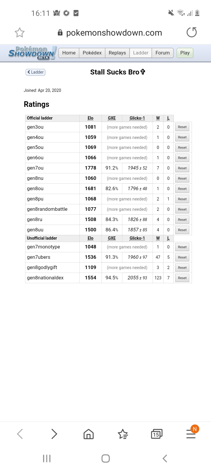 *Your Glicko's confidence interval (i.e 1886 ± 43) must be below 50 to make sure your GXE is representative enough of your skill.