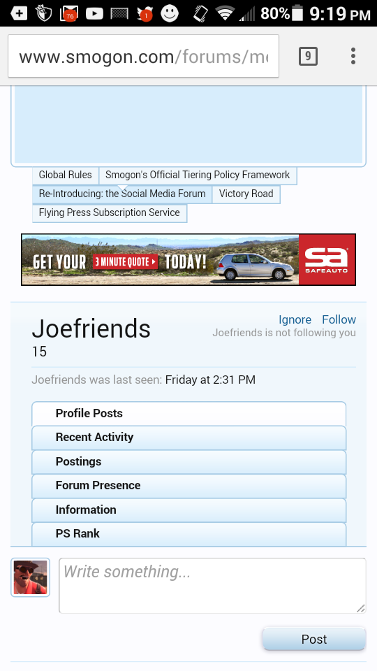 Joefriends hasnt been on since friday and I can't contact him here's a screenshot of his profile I took today...