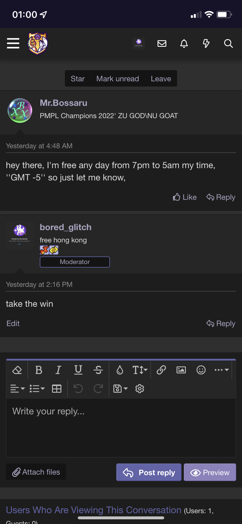 Please follow up with a Mod at all times to claim a forfeit win.